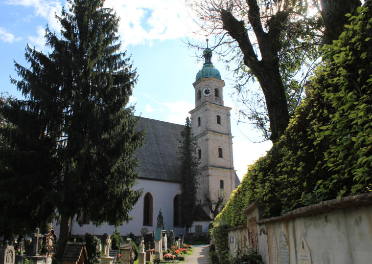 Mit der Gründung des Augustiner-Chorherren in Berchtesgaden (vgl. Station 1) wurde im Nonntal auch ein Augustiner-Chorfrauenstift gegründet. Es lag unterhalb des Bergmassivs des Locksteins und damit verkehrs- und wettertechnisch nicht ideal, sodass sie um 1400 umsiedelten. An dieser Stelle, dem Anger Berchtesgadens, wurde eine Klosteranlage errichtet und es entstand die heute noch bestehende Klosteranlage. Ab 1480 wurde eine größere Klosterkirche errichtet – die bis heute erhaltene spätgotische Kirche entstand. Um 1550 wurde das Augustiner-Chorfrauenstift geschlossen. Für etwa 150 Jahre blieb die Klosteranlage ungenutzt.Nach dieser Schließung wurde die Geschichte des Klostergebäudes sehr wechselhaft, immer wieder änderte sich die Nutzung. Die Klosterkirche stammt aus dem späten 15. Jahrhundert, während die Klostergebäude zwischen 1716 und 1723 errichtet wurden. Damals war die Anlage durch den Orden der Franziskaner zwischenzeitlich wiederbelebt worden.