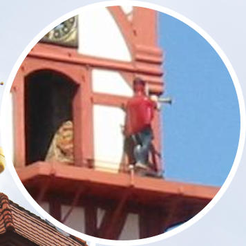 Dachspitze steht ein kleines Fachwerkhäuschen