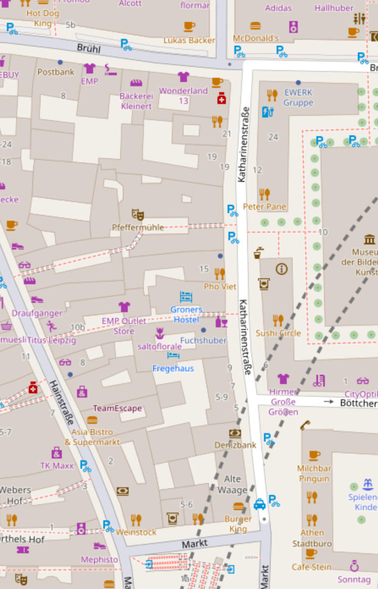 Das barocke Romanushaus (Katharinenstraße 21-23) wurde 1704 errichtet und ist eines der schönsten Stadtpalais Leipzigs. Es zeigt typische Stilelemente des Barocks.Nimm dir etwas Zeit und entdecke die Details an der Fassade.