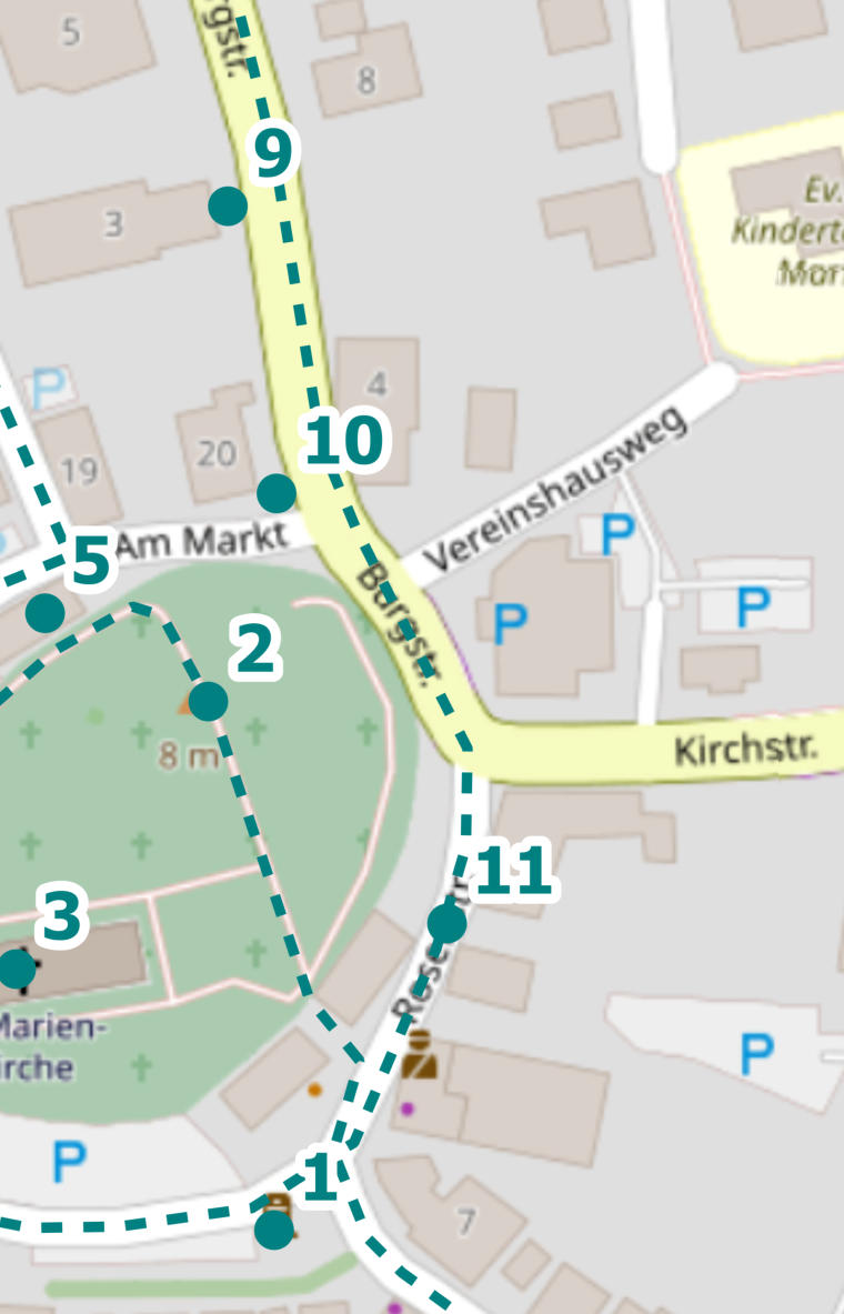 Folge der Burgstraße weiter, gehe am Friedhof