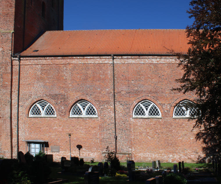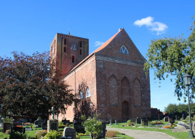 Die Marienkirche zählt zu den eindrucksvollsten Bauwerken Ostfrieslands und blickt auf eine bewegte Geschichte zurück. Errichtet wurde sie im 13. Jahrhundert als frühgotische Kreuzbasilika mit drei Schiffen. Mit einer Länge von fast 80 Metern und einem mächtigen Turm war sie zu jener Zeit die größte Kirche zwischen Groningen und Bremen und stand in ihrer Größe bedeutenden Kathedralen wie dem Dom in Osnabrück kaum nach. Der Turm hatte nicht nur kirchliche, sondern auch praktische Bedeutung: Durch unterschiedlich gedeckte Dachflächen – Kupfer im Norden, Schiefer im Süden – diente er Seefahrern als weithin sichtbares Seezeichen.Mit der Reformation im 16. Jahrhundert verlor die Kirche ihre besondere Stellung. In den darauffolgenden Jahrhunderten verfiel das Bauwerk zunehmend. Anfang des 19. Jahrhunderts war der Zustand so schlecht, dass 1829 / 1831 große Teile abgerissen werden mussten. Damit verlor Marienhafe und ganz Ostfriesland eines seiner bedeutendsten Bauwerke. Vom einst monumentalen Bau blieben lediglich das verkürzte Langhaus und der eingekürzte Turm erhalten. Um 1400 soll der bekannte Seeräuber Klaus Störtebeker in der Kirche Zuflucht gefunden haben (vgl. Station 1). Bis heute wird der Turm als „Störtebekerturm“ bezeichnet, im zweiten Geschoss liegt die „Störtebekerkammer“. Seit 1932 gibt es in dieser ein kleines Museum, wo man Sandsteinfiguren aus der ursprünglichen Kirche (aus der Zeit vor dem Umbau) sehen kann.
