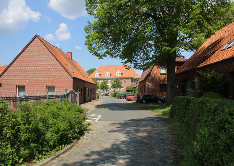 Die Bezeichnung „Amtsstraße“ lässt es schon vermuten – hier wurde einst ein Amt verwaltet: Das Amt Westen-Thedinghausen. Während der frühen Neuzeit waren Ämter eine Verwaltungsebene zwischen Gemeinden und der Landesherrschaft. Sie übernahmen die Aufgabe der Verwaltung und Rechtsprechung. Einem Amt stand ein Amtmann vor, der von der Landesherrschaft eingesetzt wurde. Das Amt Westen-Thedinghausen wurde für 180 Jahre aus Westen verwaltet. Schwedische ZeitNach dem Ende des Dreißigjährigen Kriegeswurden das Herzogtum Bremen-Verden und das Stift Verden ein Teil von Schweden. Infolgedessen mussten die Bauern ihren Zehnt nun an die Schwedische Krone abliefern, also an den nun von den Schweden geleiteten Zehnthof. Frieden von CelleIm Frieden zu Celle im Jahr 1679 trat Schweden diese Rechte und Besitztümer an das Haus Braunschweig-Lüneburg ab. Die Umsetzung des Friedens zog sich über mehrere Monate hin und wäre beinahe gescheitert. Durch ein Losverfahren als Ergebnis des Friedensvertrages bildeten sich in der Region zwei Ämter: das Amt Thedinghausen fiel an Rudolf August von Wolfenbüttel (*1627, †1704), während im östlichen Bereich das Amt Westen entstand. Es fiel an Ernst August von Hannover (*1629, †1698). Damit gründete sich das hannoversche Amt Westen-Thedinghausen.Mit der Amtsentstehung und dem Gerichtssitz wurde das kleine Westen mit einem Schlag bedeutsam für die Region. Hier residierte nun der Amtmann. Zahlreiche neue Verwaltungsgebäude entstanden, wie beispielsweise entlang der Amtsstraße.