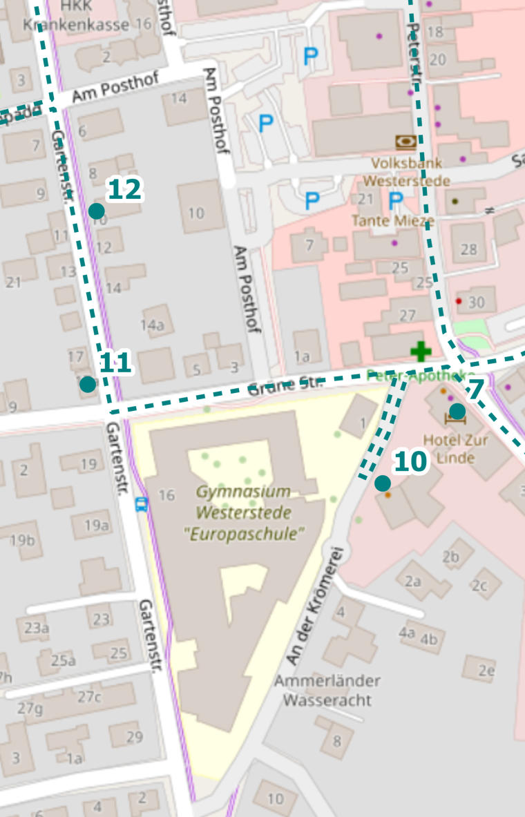Kreuzung rechts in die Gartenstraße ein. Auf