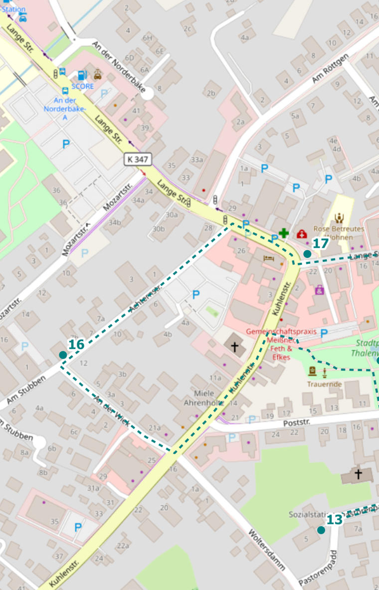 Gehe mit Blick auf das Bauernhaus nach rechts