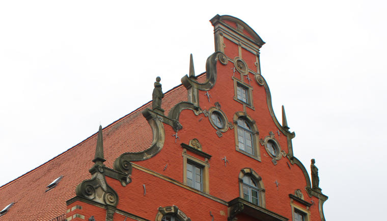 Der Renaissancegiebel wird von einem
