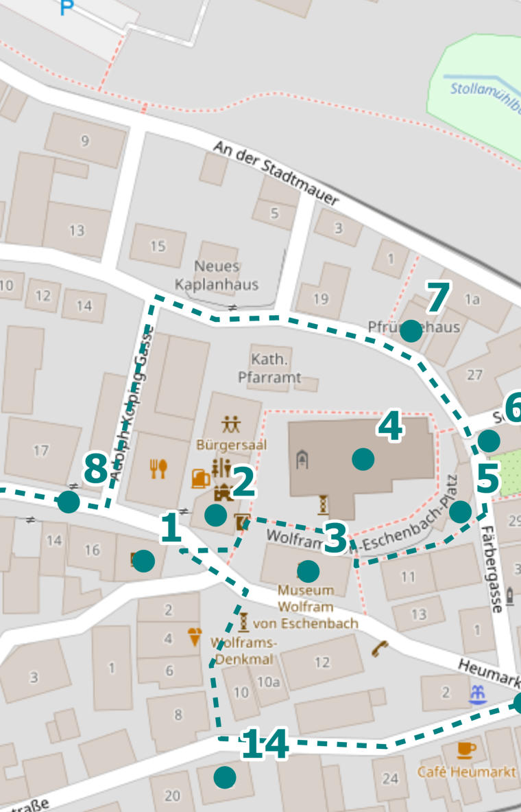 Kolping-Gasse ein. Gehe am Ende der Gasse