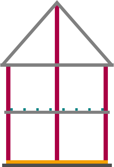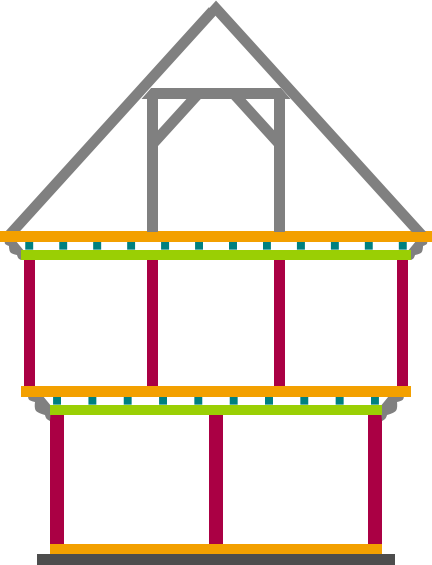 Außenwände die Lasten der Holzkonstruktion. Sie