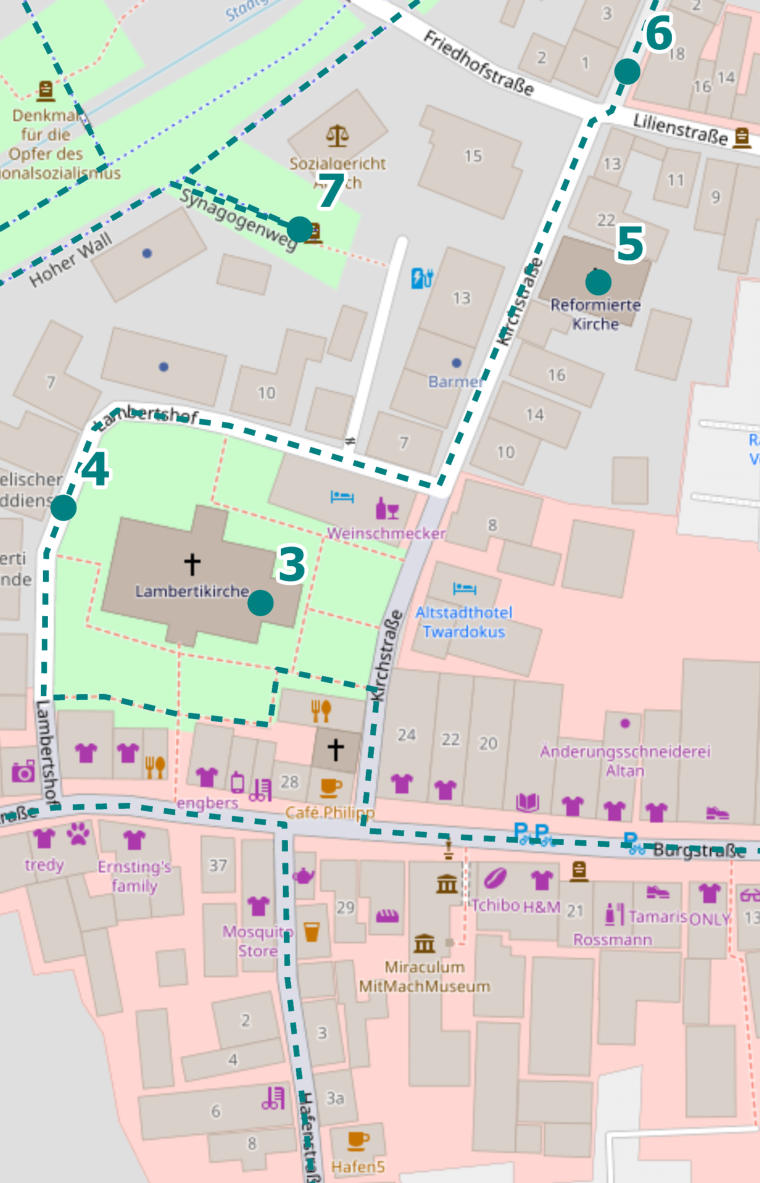 Schritten kommst du am Kirchturm vorbei,