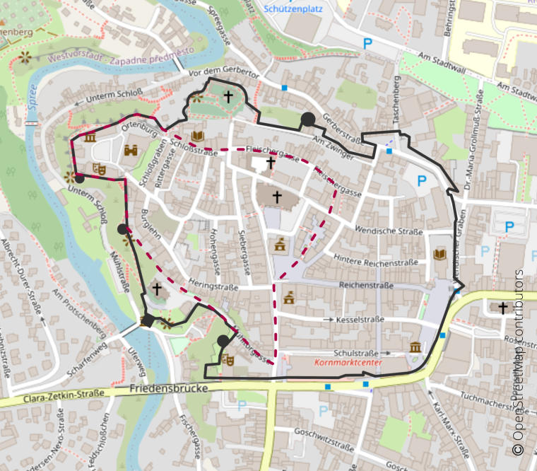 Verlauf der inneren mittelalterlichen Stadtmauer