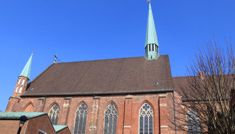 Blick auf das breite Satteldach von St. Johann
