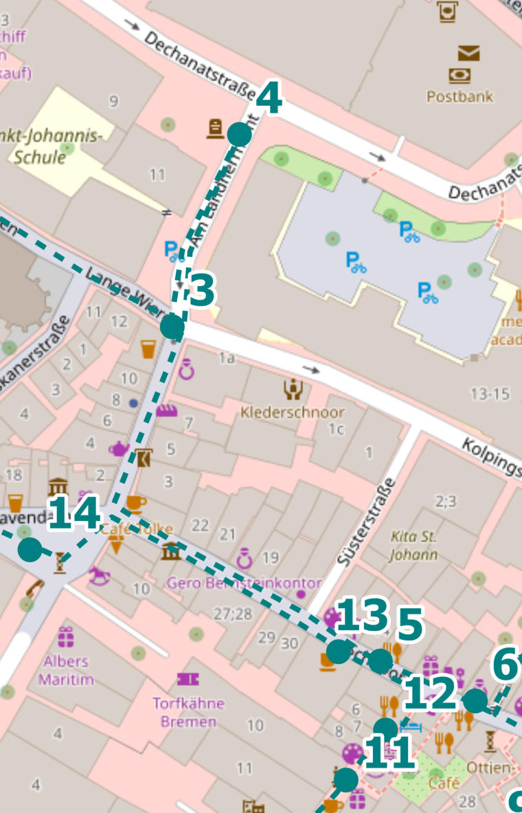 Friedrich“ vorbei. An der nächsten Kreuzung