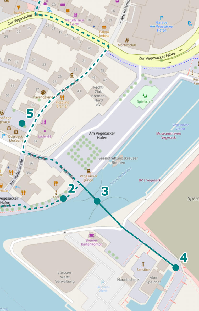 Hafenstraße ab. Bald öffnet sich nach links ein