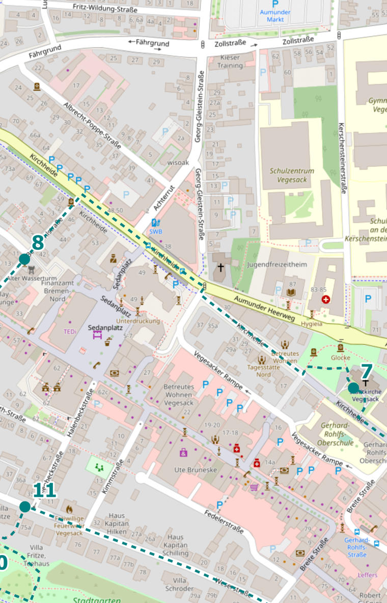 Folge der Straße „Kirchheide“ weiter. Biege an