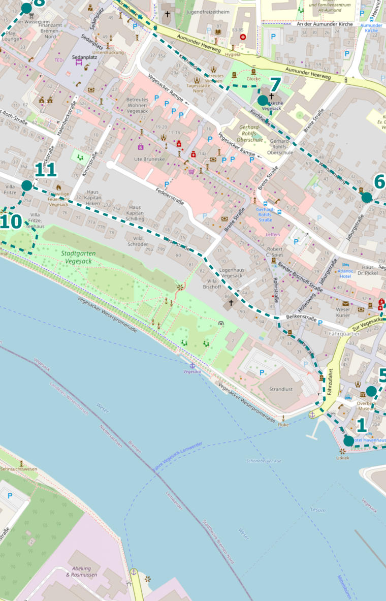Folge der Weserstraße weiter. Halte dich an der
