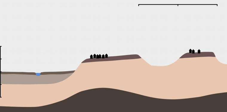 Geologisches Profil von der Weser [1], über Vegesack [2] nach Löhnhorst [3]. Vegesack liegt auf einem eiszeitlichen Sockel oberhalb der Weser.