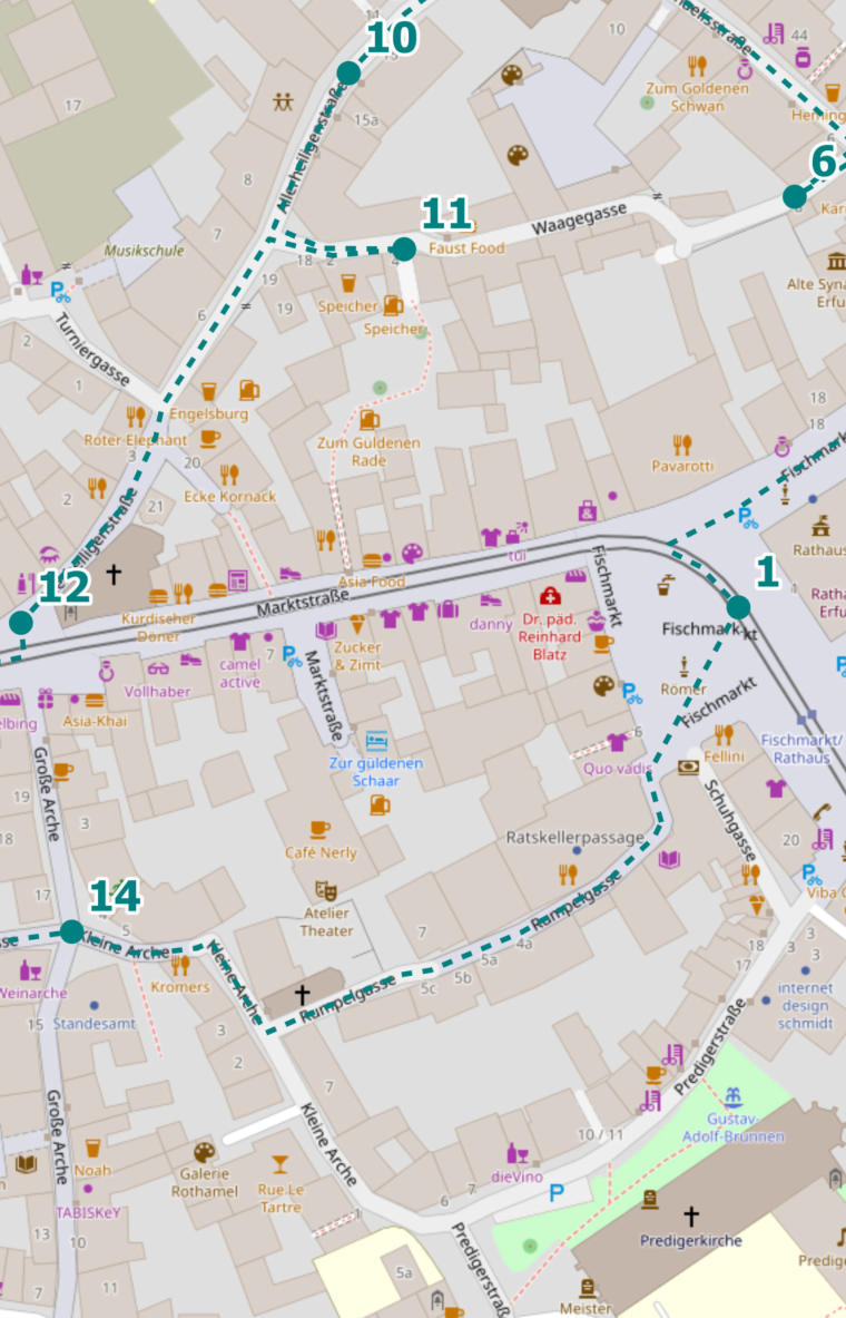 Rumpelgasse führt dich zurück zum Fischmarkt.