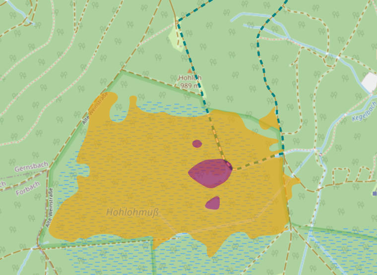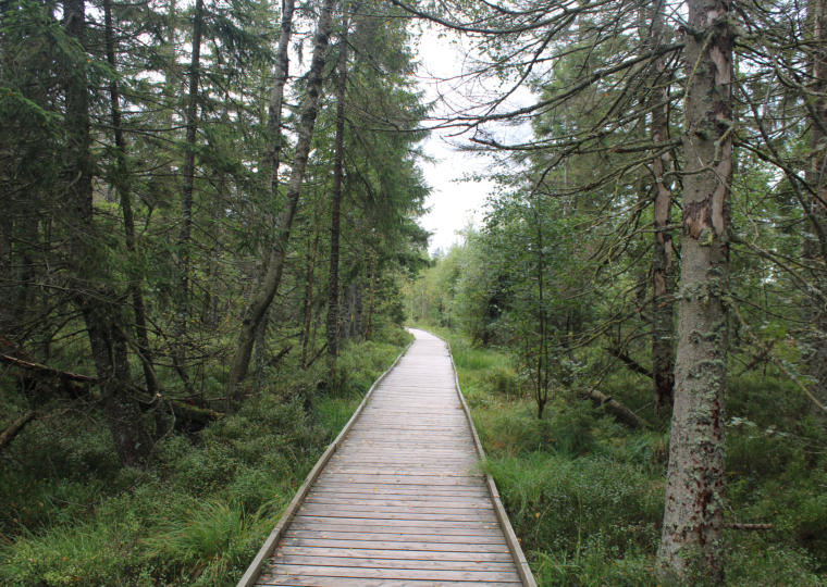 Viele der kleineren Moore auf dem Hohloh sind aus der lokalen Vernässung von Senken entstanden und werden als Missen bezeichnet (vgl. Station 3). Auf dem Hohloh kommen jedoch auch deutlich größere Moorflächen vor. Dieses sind typische Hochmoore. Ihre Anfänge liegen in der Zeit nach der letzten Eiszeit vor über 11.000 Jahren. Durch das langsame aber stetige Wachsen der Torfmoose und Sauergräser wölbte sich der Moorkörper immer stärker auf. Es bildete sich ein mehrere Meter mächtiger Torfkörper in der Form einer flachen Kuppe.Die hier vorkommenden Moore sind Hoch-moore. Durch das Aufwölben haben die Torfmoose den Kontakt zum Grundwasser verloren. Sie sind ganz auf den Niederschlag angewiesen und müssen mit den wenigen Nährstoffen des Regenwassers auskommen.