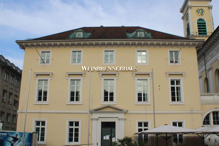 Die Seitenflügel der klassizistischen Stadtkirche wurden als Gymnasium (links) und Lyceum - Hochschule (rechts) errichtet. Damit befanden sich die wichtigsten Lehrgebäude dieser Zeit auch direkt am Marktplatz.