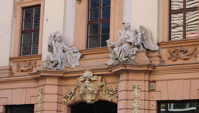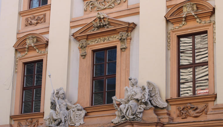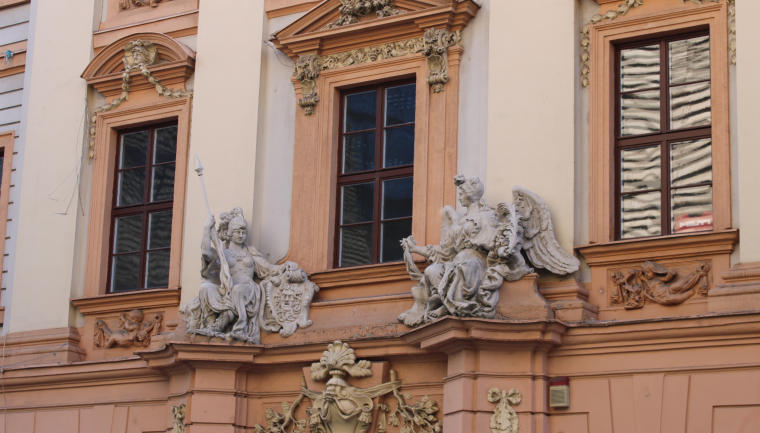 Das barocke Romanushaus (Katharinenstraße 21-23) wurde 1704 errichtet und ist eines der schönsten Stadtpalais Leipzigs. Es zeigt typische Stilelemente des Barocks.Nimm dir etwas Zeit und entdecke die Details an der Fassade.