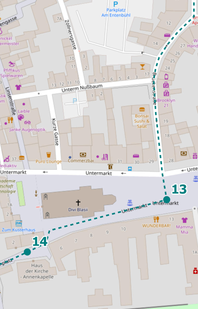 Gehe mit Blick auf die Divi-Blasii-Kirche links