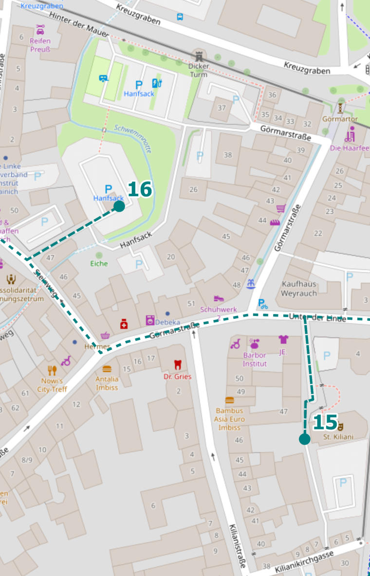 Gehe zurück zur Straße „Unter der Linde“ und