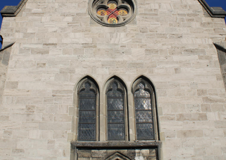 Das Eingangsportal der Kirche zieren drei