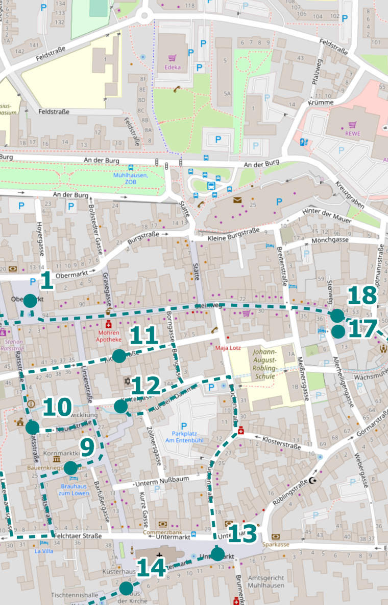 Folge dem Steinweg weiter, du kommst zum