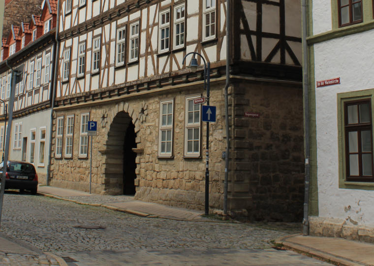 Vor dem Bau der inneren Stadtmauer waren große Teile der Oberstadt noch unbebaut und bildeten einen großen Platz, in dessen Mitte nur die Kirche St. Marien lag. In der frühen Stadt Mühlhausen war es ein wichtiger Handelsplatz, wo sich mehrere Fernstraßen trafen. Erst mit dem Bau der (inneren) Stadtmauer entstanden die heutigen Straßenzüge und eine erste Bebauung. Nur noch wenige Gebäude stammen aus dieser Zeit, denn große Teile von Mühlhausen wurden immer wieder durch schwere Stadtbrände zerstört.Entlang der Holzstraße stehen heute zahlreiche prächtige Fachwerkhäuser. Viele waren ursprünglich sogenannte Pfleghöfe, also Wirtschaftshöfe von Klöstern, die in einem großen Umkreis rund um Mühlhausen lagen. Dies unterstreicht erneut die große Bedeutung von Mühlhausen als wichtiges Handelszentrum im Herzen des damaligen Heiligen Römischen Reiches.