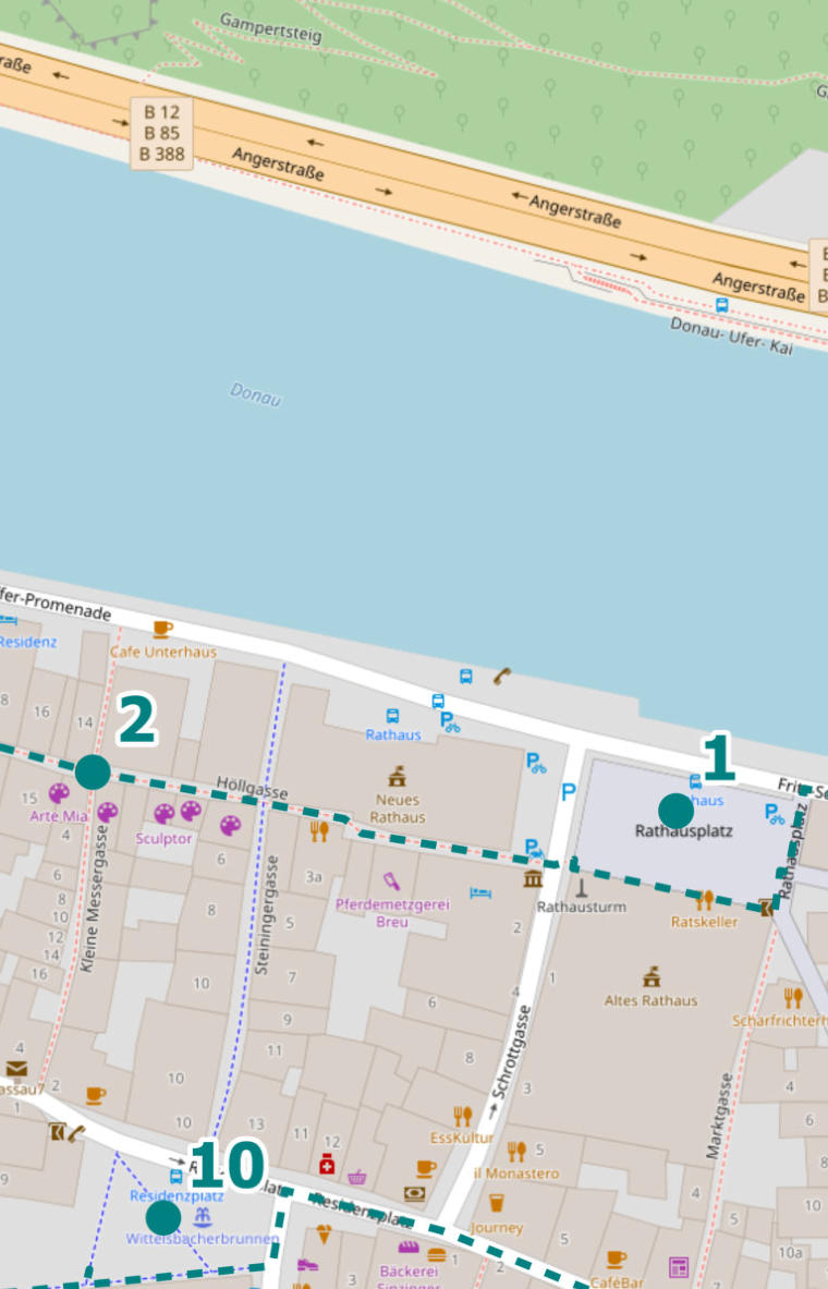 Verlasse den Rathausplatz über die Höllgasse