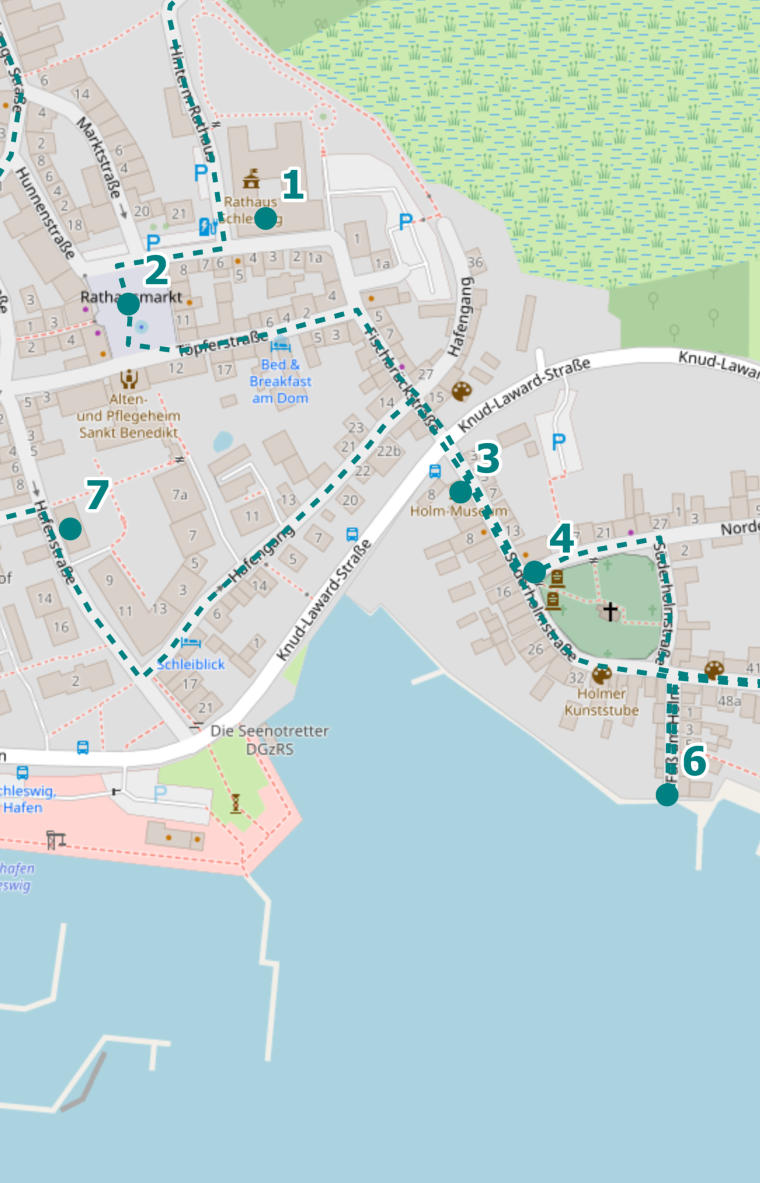 Straße (Knud-Laward-Straße) hinweg. Biege an