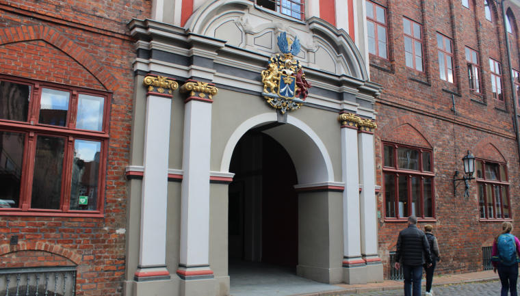 Im Innenhof des Rathauses ist eine hölzerne