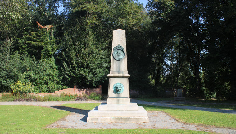 Hinter dem Denkmal liegt ein kleiner Park, der