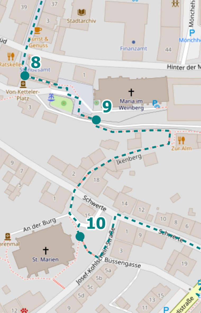 Folge dem Fußweg bergab in die Altstadt. Biege