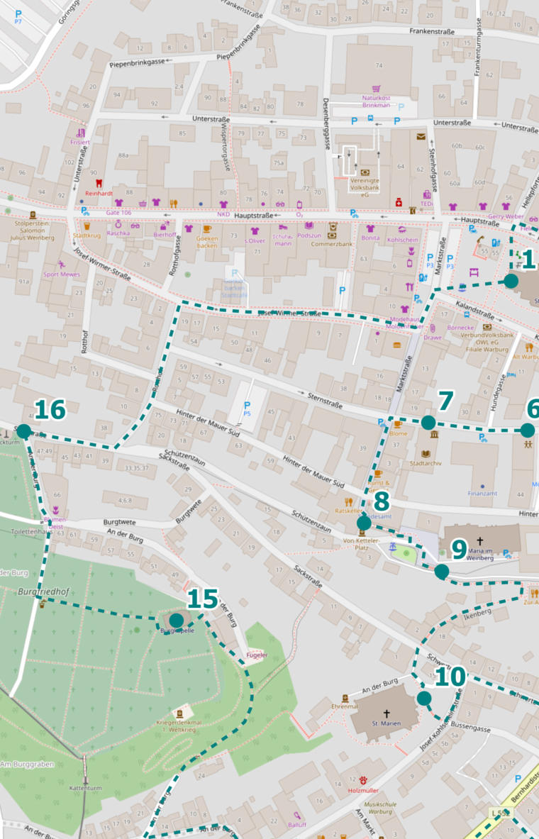 Folge der Sackstraße stadteinwärts. Biege an