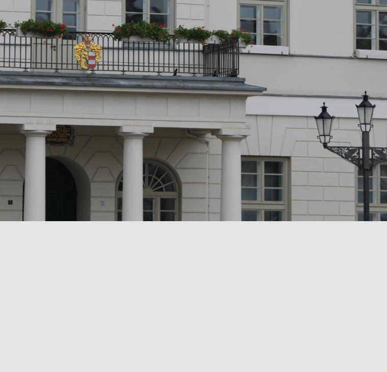 Der Eingangsbereich wird durch einen Balkon geschmückt. Dieser steht auf einfachen Säulen. Sie lassen das Gebäude herrschaftlich wirken und erinnern ein wenig an antike Säulen.