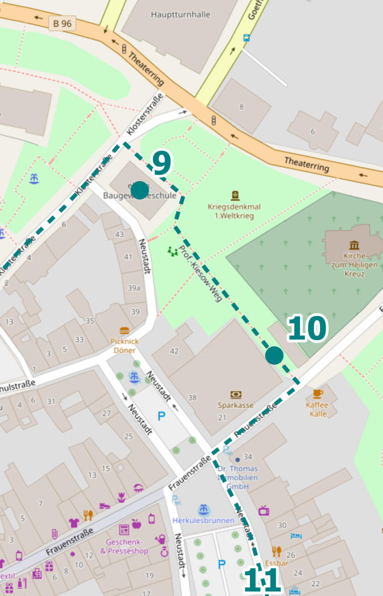 folge dem Fußweg (Prof. Kiesow Weg) durch die