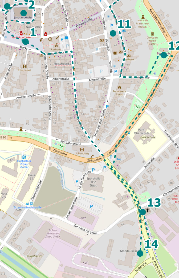 Gehe die Friedensstraße zurück und überquere